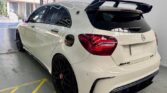 Riding slightly lower then most A45’s you see on the road (on top-spec BC Racing Coilovers which feature height and damper adjustability), and sporting a couple of small exterior updates from later models, this is not only one of the fastest hatches that we have ever had the opportunity to drive – its pretty well up the top of the ranks when it coms to being one of the better looking too. The Polar White exterior, with Black Nappa leather and Red highlights on the inside (with Carbon Fibre Trim pieces, naturally) is such a classic “AMG” look but really does make this hatch feel as premium as it drives.
